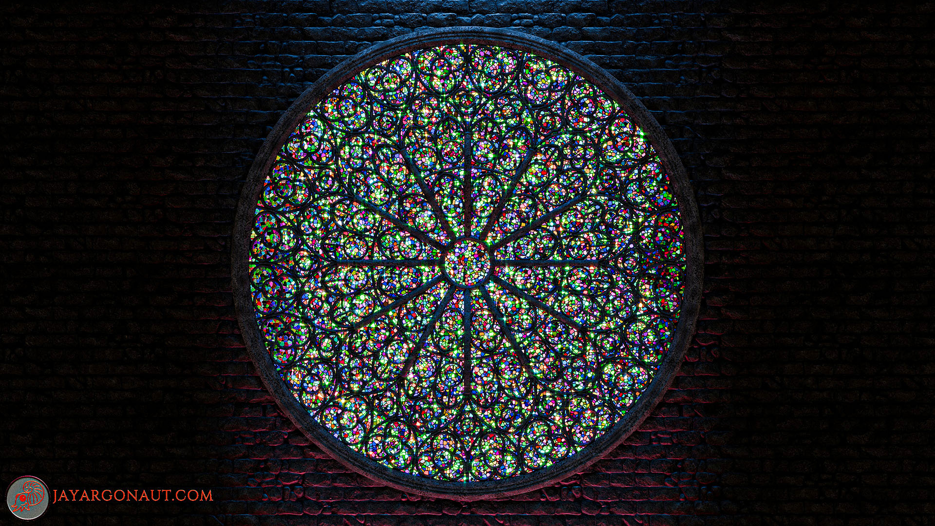 The Heaven and Hell Rose window by Jason Garth Edwards. Built, modelled, and rendered using Blender 4.0 creation suite.