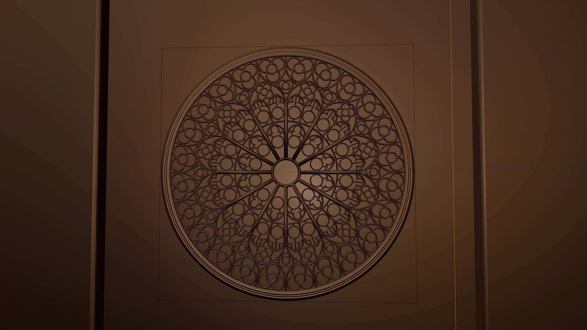 And a couple of the model images, without materials and finish added, just to give you a better idea of the base modelling involved. I drew all of this manually rather than using geometry nodes. so took some time and patience, but very rewarding! This is an interpretation of a famous Rose window…can you tell which?