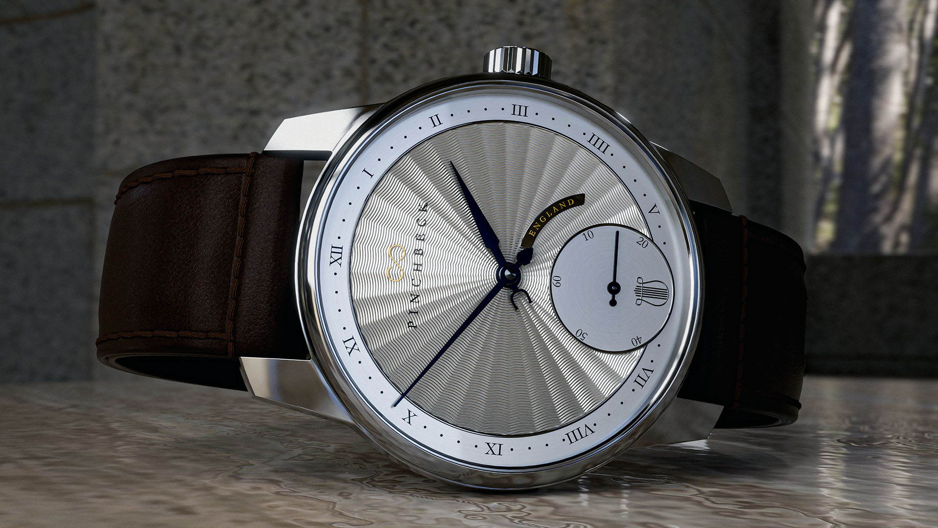 Just one of the stunning and beautifying aspects of the Orpheus watch is the detailed guilloche fanning pattern on the dial, which not only captivates the eye with its intricate design but also adds a layer of artistry to the overall aesthetic. The craftsmanship involved in creating such a pattern showcases the remarkable skill of watchmakers, highlighting their dedication to perfection. This exquisite detail complements the watch’s finish I believe, a subtle yet beautiful detail that catches the light and the eye, especially when handled and turned. Detail like this can easily be lost in photography or rendering; this is where careful lighting and good post-processing in software like Adobe Photoshop can help elevate detail like this. For this case, the Adobe Photoshop Camera Raw Filter helped by increasing the texture and clarity settings; this helps bring out the shadows and details of such fine reflections.