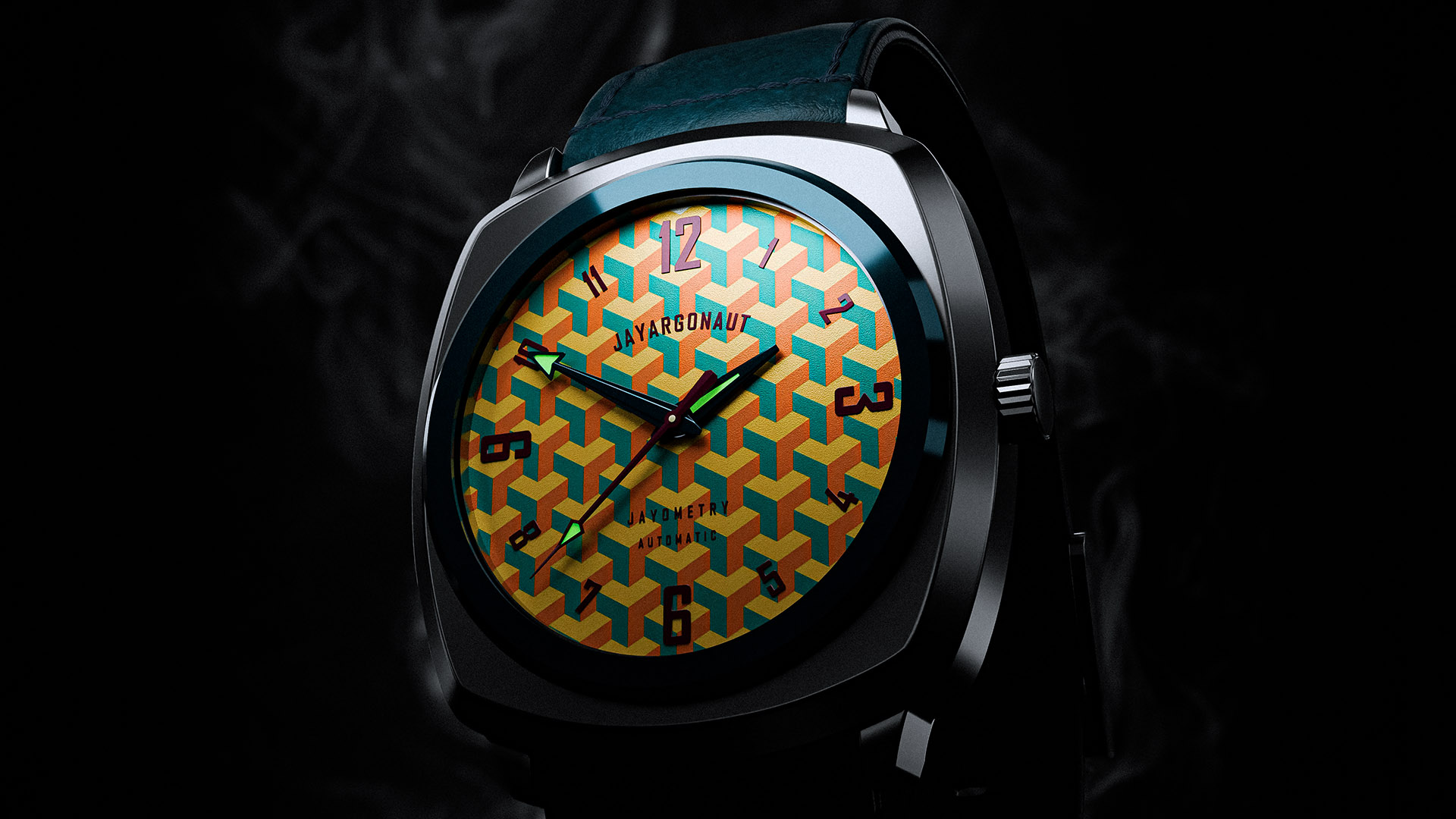 A retro 70s styled concept watch with geometric tiled dial. Designed & rendered by Jason Garth Edwards at www.jayargonaut.com